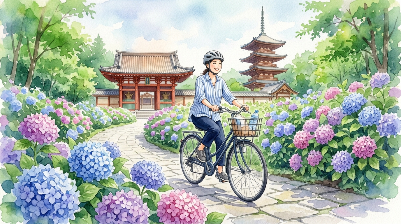 足立区都市農業公園周辺では、初夏にはユリとあじさいが楽しめます。梅雨の時期でも、雨上がりの河川敷は空気が澄んで気持ちよく走れます。